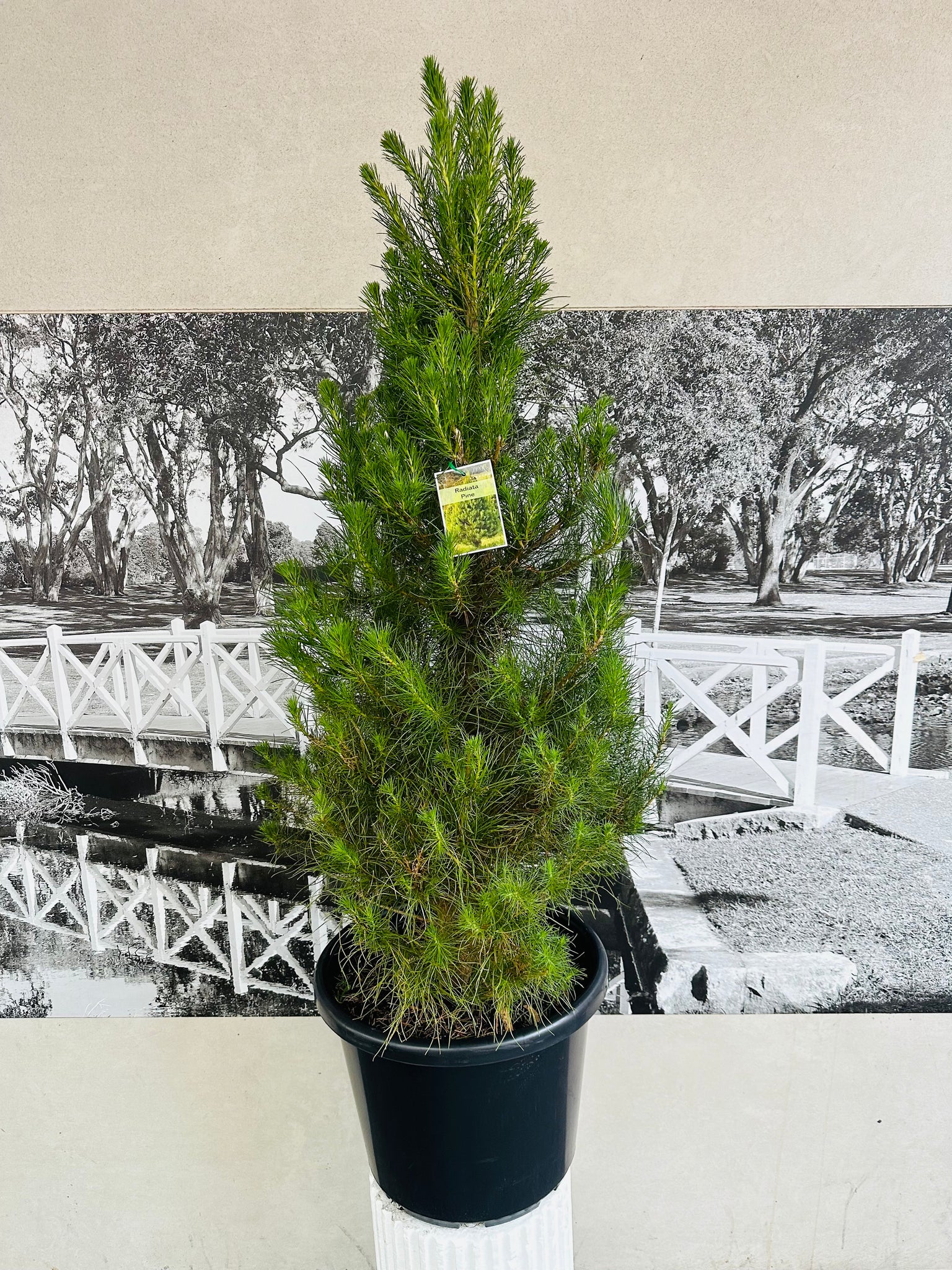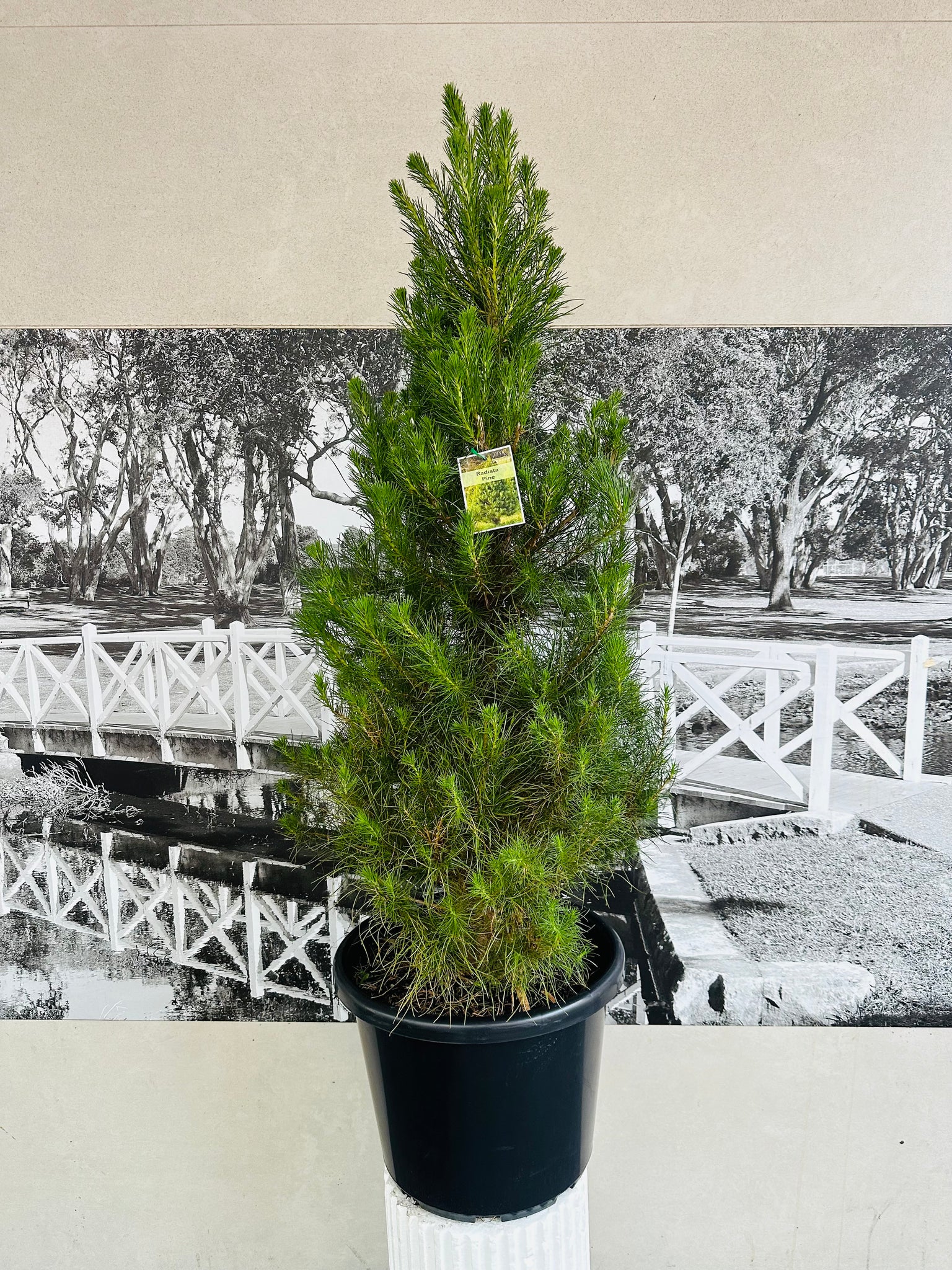 While indoors for Christmas, place your Radiata Pine in bright, indirect light and water when the top 2–3cm of soil feels dry. Pines like consistent moisture but dislike soggy soil, so ensure the pot drains well. After the holidays, gradually move the pine outside over several days to avoid shock. Long-term, Radiata Pine thrives in a sunny outdoor position, such as a balcony, courtyard, or garden bed. Water regularly during warm weather and feed with a balanced, slow-release fertiliser in spring to support healthy growth.